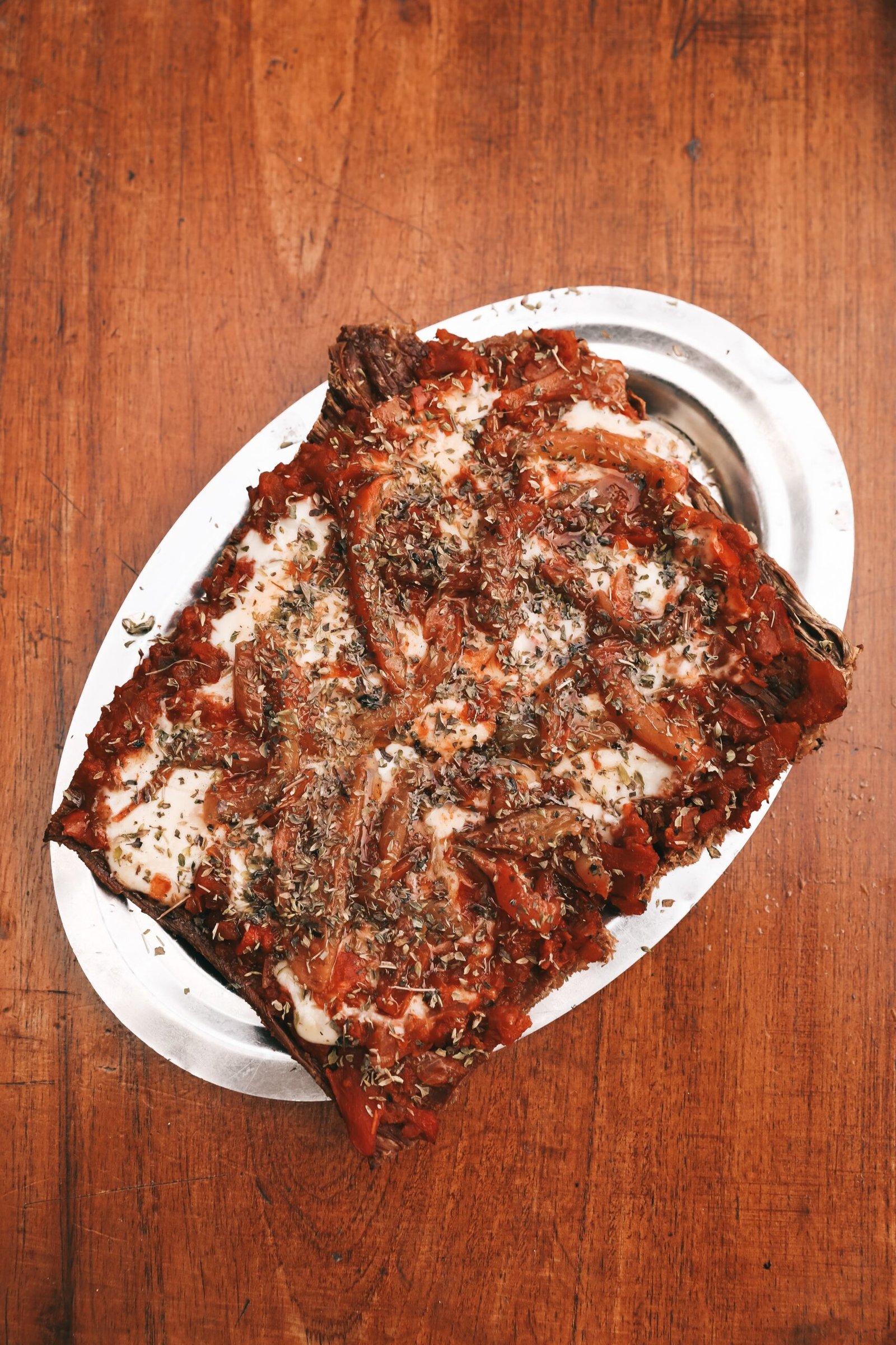 Matambre de carne tiernizado a la pizza con papas fritas, ensadala o cabutia asada